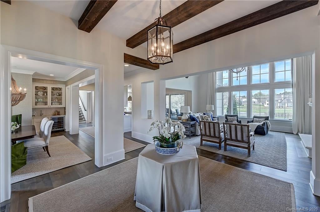 You won't want to miss this stunning former Arcadia model professionally designed by Traci Zeller Interiors! Located in the gated community of The Meadows at Weddington, highlights include a grand foyer entry with wood beams leading to a 2-story great room, European white oak floors, smart home automation, a master on main, master bath with a free-standing tub, a walk-in shower with frameless glass doors, dual closets with custom built-in cabinets & drawers, an office with glass pocket doors & custom built-in cabinets, a gorgeous kitchen with Wolf dual fuel range/oven, vented hood, herringbone backsplash, stainless steel farm sink, stacked cabinets to ceiling, microwave drawer, Subzero fridge, oversized island, Caesarstone countertops, built-in coffee bar & a walk-in pantry. Step outside to the pavilion with beautiful pond views & find a fireplace, built-in grill, flagstone flooring, stacked sliding doors, retractable screens, tongue& groove ceiling, & a custom grill.